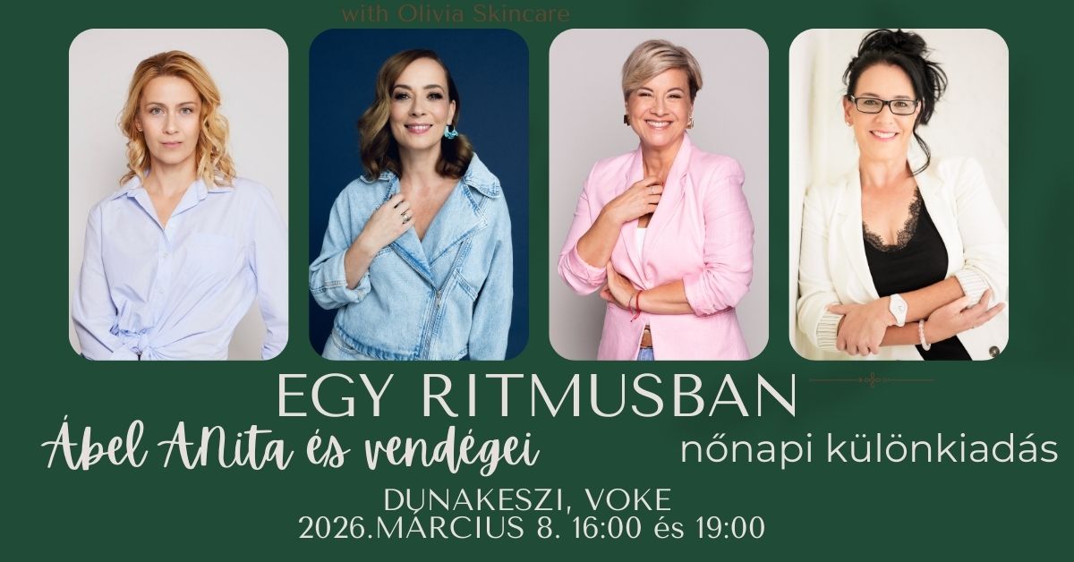 Az Egy ritmusban nőnapi különkiadása Dunakeszin! Ábel Anita és vendégei ezen a különleges napon személyesen is találkoznak a közönséggel. Anita vendégei Farkasházi Réka és Balsai Móni színésznők, valamint Gönczi Dorka mediátor. A Palikék Világa Youtube csatorna egyik legnézettebb podcastje az Egy ritmusban, mely ezúttal is megszokott, kivételesen egyedi, közvetlen és mégis bensőséges hangulatot nyújtja a közönségnek a személyes találkozás varázsával fűszerezve.