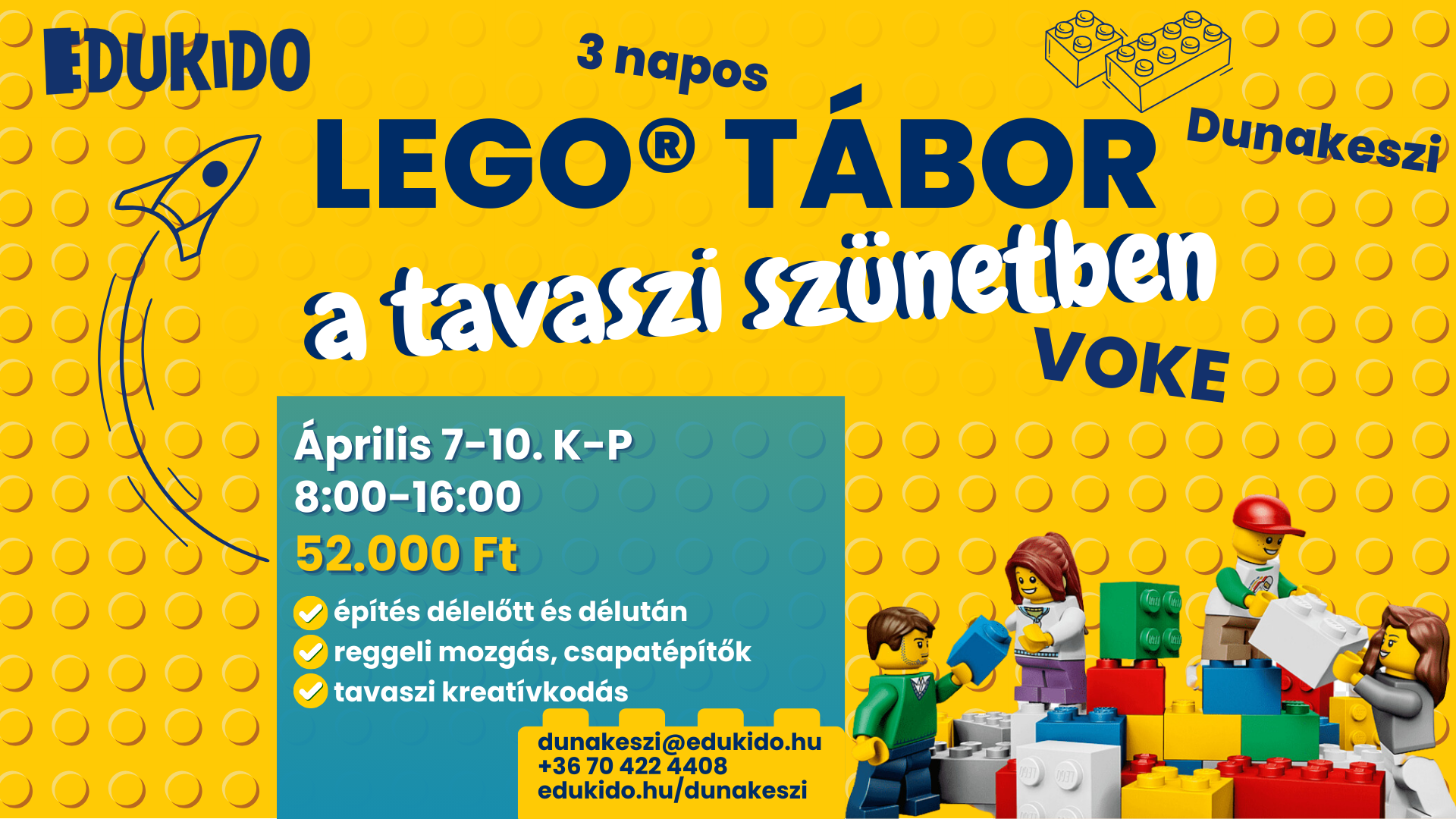 Merülj el a Lego-zás világában!Építés négy napon át, délelőtt és délután a tavaszi szünetben. Tematikát követve kalandozunk a kis építőkockák segítségével.Telefon helyett, kreatív időtöltés!Várjuk a 6-10 éves gyerekeket Dunakeszin a művelődési központban.Dátum: 2026.04.07-10.Bővebb infó és jelentkezés: www.edukido.hu/dunakeszi
